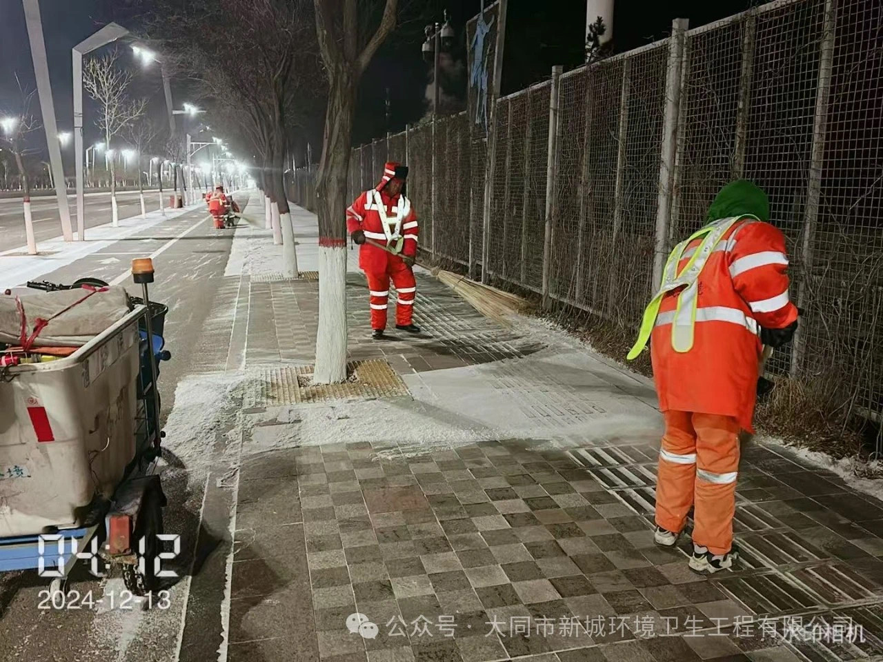 12月12日夜間,大同迎來(lái)入冬以來(lái)的第二場(chǎng)降雪。按照市城市管理局安排部署,大同市新城環(huán)境公司“以雪為令”,第一時(shí)間組織各清雪部門(mén)連夜開(kāi)始清理路面積雪,持續(xù)開(kāi)展清雪作業(yè),加強(qiáng)主干道、快速路、匝道、橋涵、彎道等重點(diǎn)路段的作業(yè),確保“即停即清”,道路安全暢通。